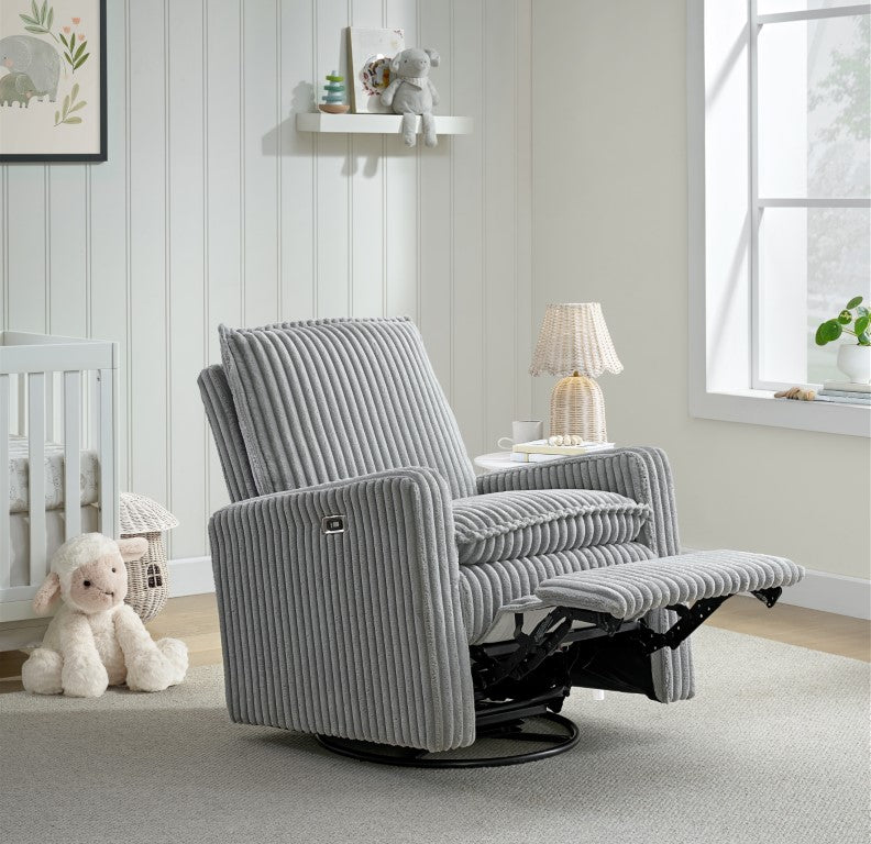 Elevate your nursery with the Uptown Power Glider — a beautifully crafted piece that brings together timeless design, whisper-quiet power functionality, and unmatched comfort. Designed for discerning parents who refuse to compromise on style or serenity, this recliner is a sanctuary for both you and your baby.