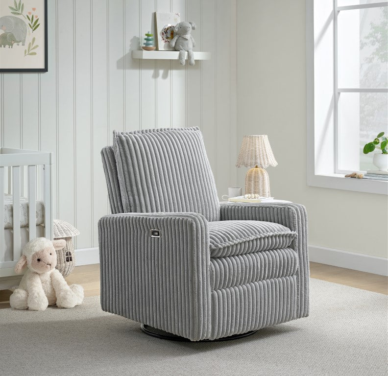 Wrapped in premium, buttery-soft  fabric with refined stitching and a modern silhouette, the Uptown Power Glider seamlessly blends into any nursery. One-touch electric reclining, paired with a gentle gliding and 360° swivel base, ensures smooth motion for those precious bonding moments.