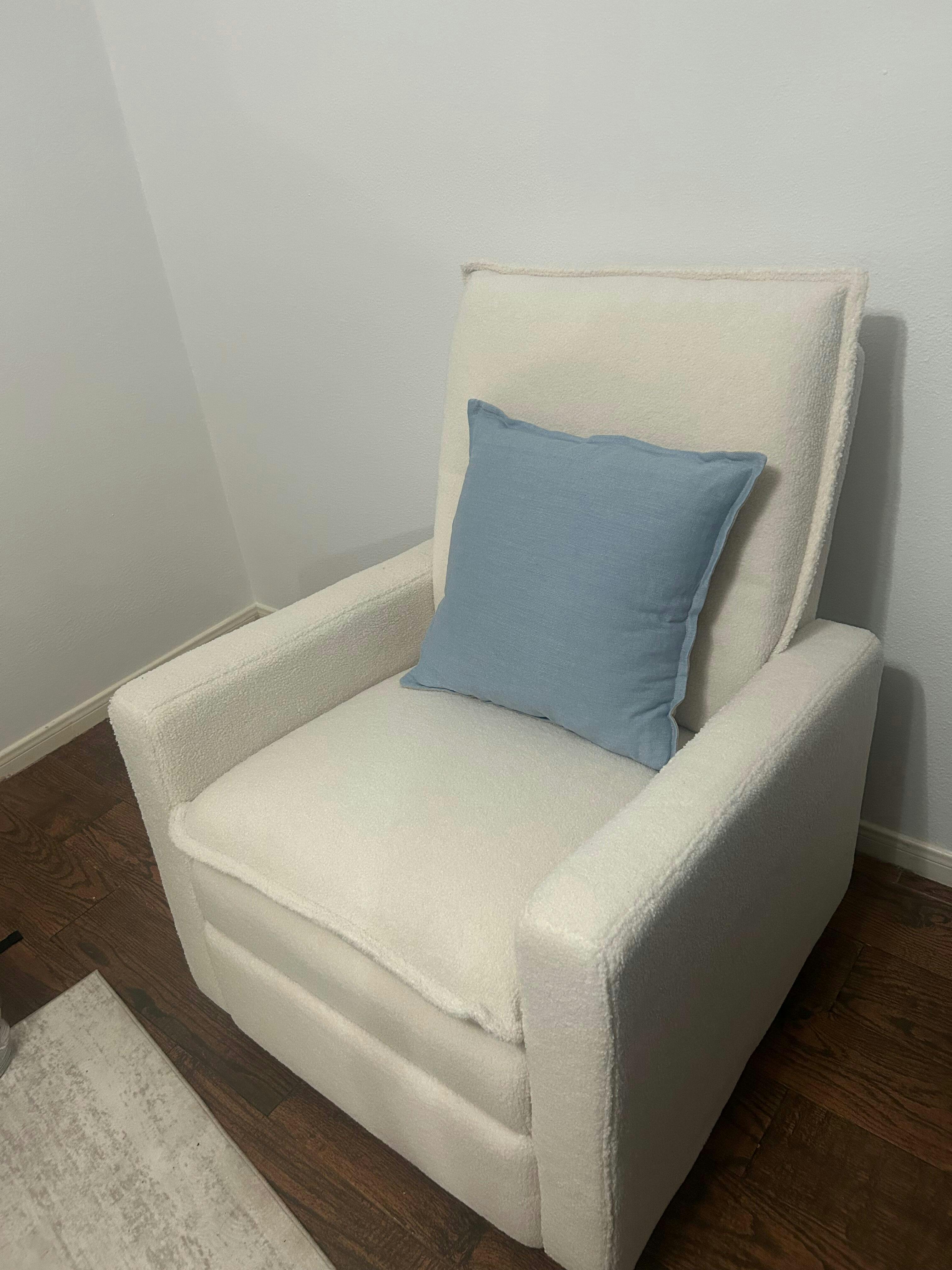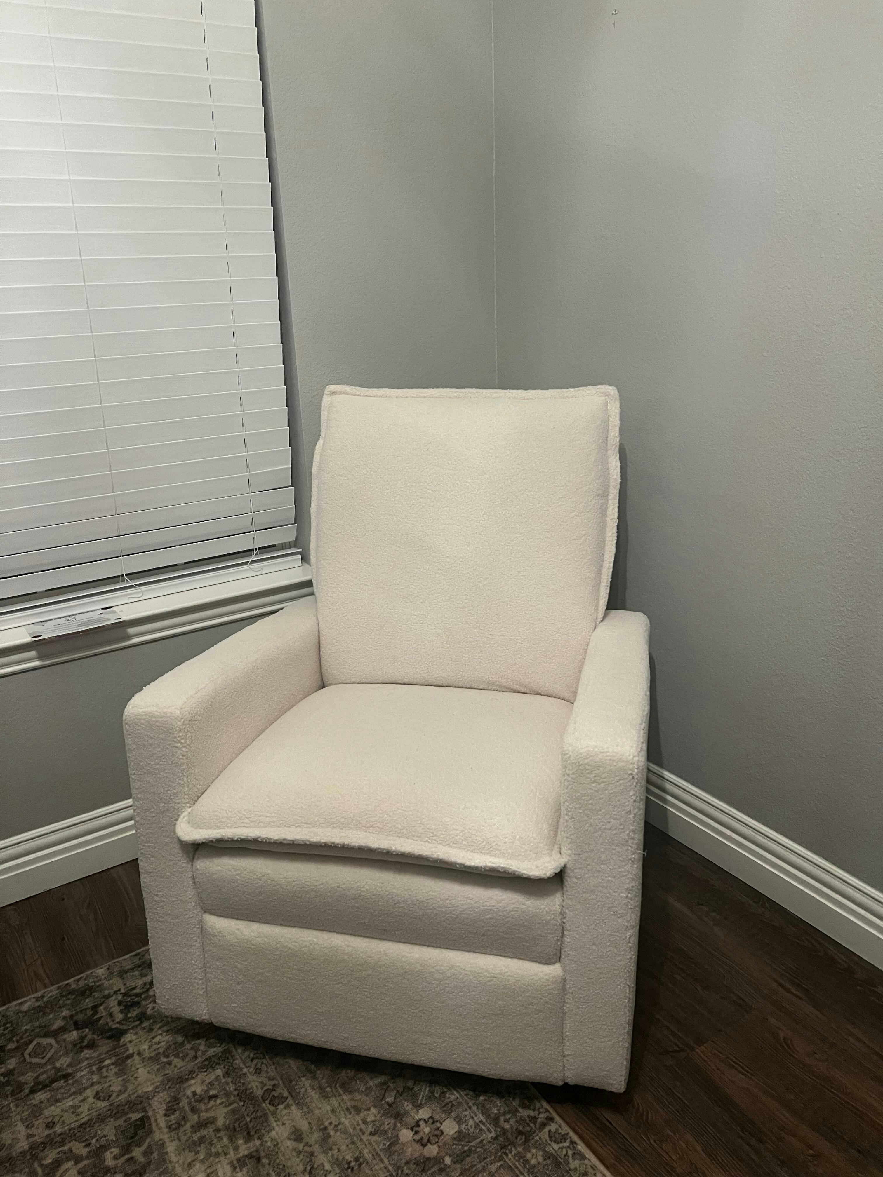 We love this rocker for our daughter's nursery. The boucle is very pretty and looks just like many of the luxury competitors, but for a fraction of the price. Definitely recommend!